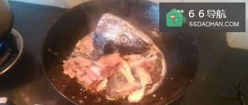 4然后将鱼翻炒一下,等几分钟后,倒入两小碗料酒,适量生抽、老抽、生姜、蒜、辣椒、八角,加水适量,没过鱼身,小火慢炖10分钟,具体如下图所示