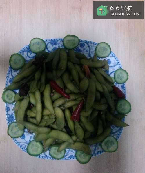 5盛入盘中,美味的毛豆小吃餐就做好了,可以上桌招待客人了。