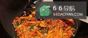 2干辣椒放入后马上加入土豆丝,马上加土豆的原因是干辣椒容易糊。