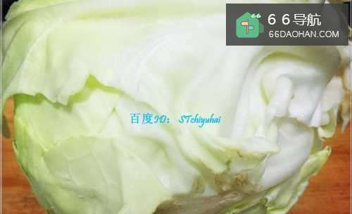4准备一个包菜,将其菜叶撕成小块状,茎部分较老,直接不用。