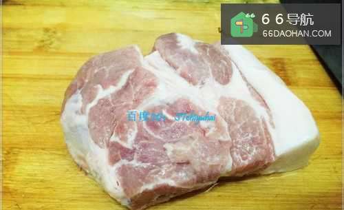 2准备一块腿肉,先将其过水清洗一遍,然后将腿肉去皮,然后切成薄片状。