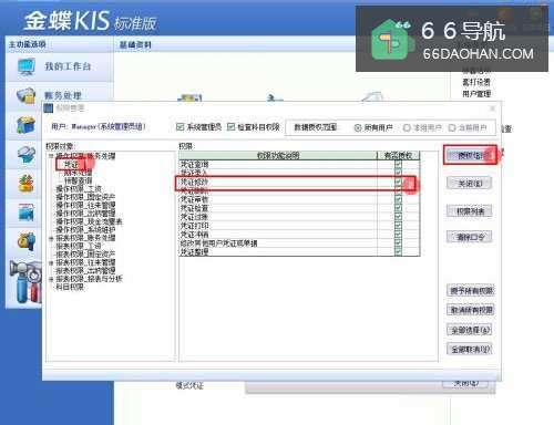 4在“权限管理”界面,选择权限对象【凭证】,勾选权限【凭证修改】,点击【授权】→【关闭】即可;