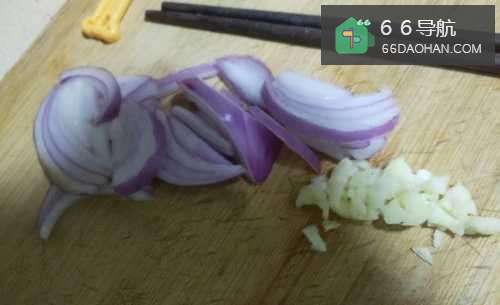 4接着加洋葱和蒜末翻炒,炒出香味!