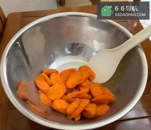 红薯去皮切片,蒸熟,压成红薯泥。