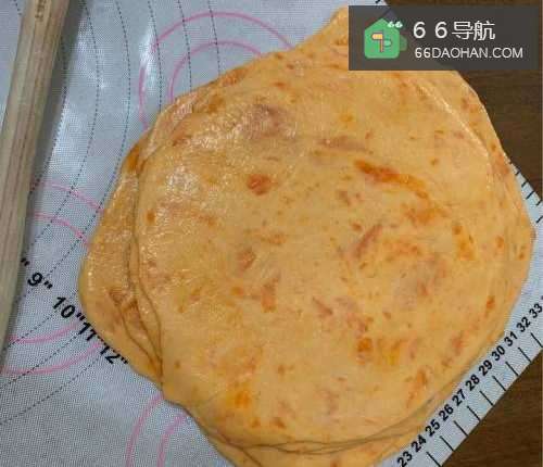 3每一层刷玉米油,叠起来,上面盖最大那片,然后锁边,把边缘收在饼的底层。