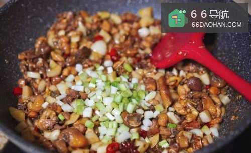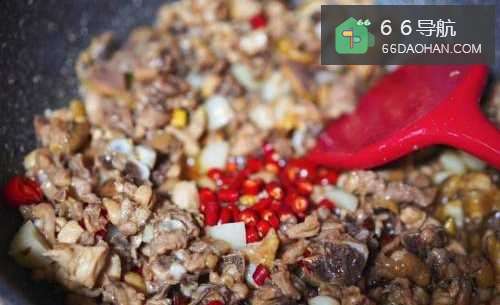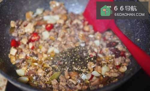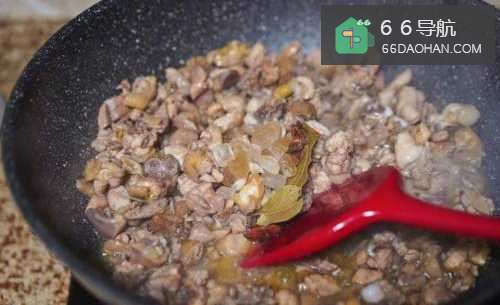 2锅里倒适量油,油热后倒入鸡肉翻炒5分钟