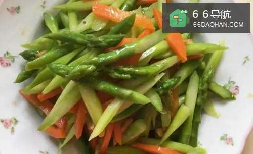 5烫熟的芦笋捞起来和蒜油拌匀即可