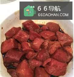 (楼主的习惯是喜欢把牛肉完全洗干净再腌制入味,或者生的牛肉放在凉水里泡一会泡出血水洗净之后再腌制。