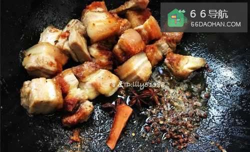 7放入八角、花椒、桂皮炒几下,把香味炒出来。