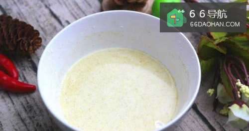 3把白糖、淀粉、胡椒粉、盐混合均匀,再倒入适量水,搅拌成面浆
