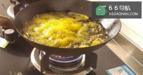 5继续进行手上的动作,把一个有一个的肉圆放在油锅里进行加热,直至肉圆从油锅里冒出来就可以用漏勺呈上来了。