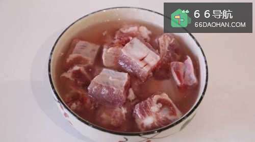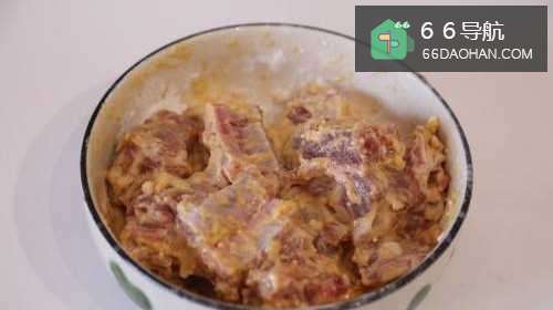 3泡好的排骨洗净后加入花雕酒、黑胡椒粉、少许盐,抓匀后放进冰箱腌制2小时