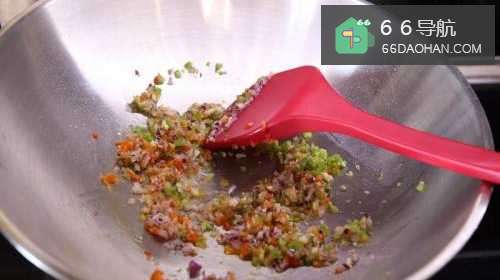8把油锅里的油倒出来,留一点底油,把葱姜蒜倒进去炒香,再把洋葱、青红椒倒进去翻炒几下