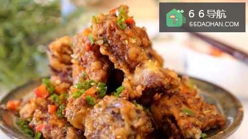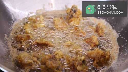 7锅里倒适量油,开中小火,油热后把排骨倒进去炸制,当颜色变得金黄时转至大火炸片刻即可捞出