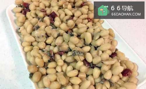 3取出浸泡入味的花生米去皮,连同浸泡过的辣椒、花椒等一起沥干后放冰箱冷冻约8小时