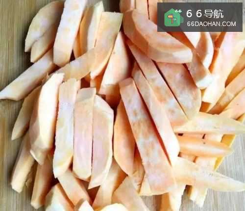 2将红薯切成条状或者块状。