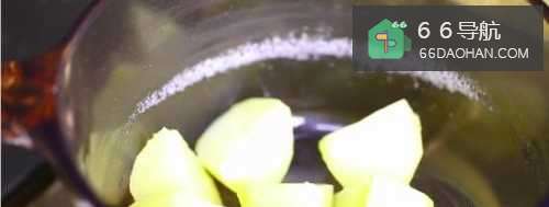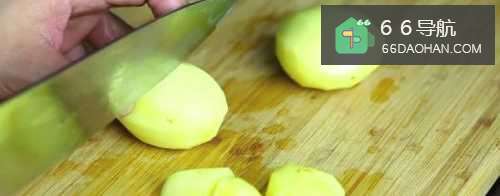 2去皮,并把土豆切成1/2或1/4的块状,这样更容易煮熟。