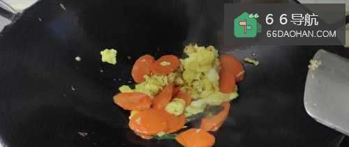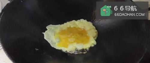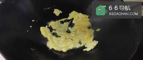 锅中放入50毫升食用油,烧至5成热,倒入鸡蛋液煸炒。