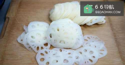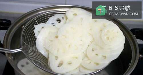 4藕片在开水锅里煮变色,捞出,充分过凉水,可保持脆嫩口感;