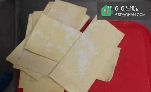 2冷冻酥皮切长条,要能包覆住整个年糕