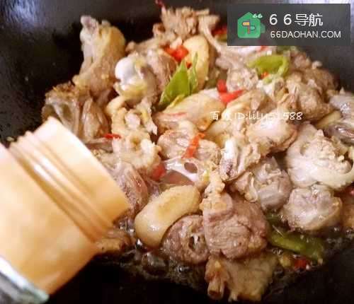 9加入适量的盐,五香粉,蚝油调味,将鸭肉翻炒均匀,装盘。