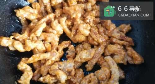 6最后向锅中加入炸好的里脊肉翻炒均匀即可出锅