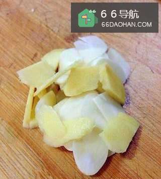 2将生姜和大蒜切片。