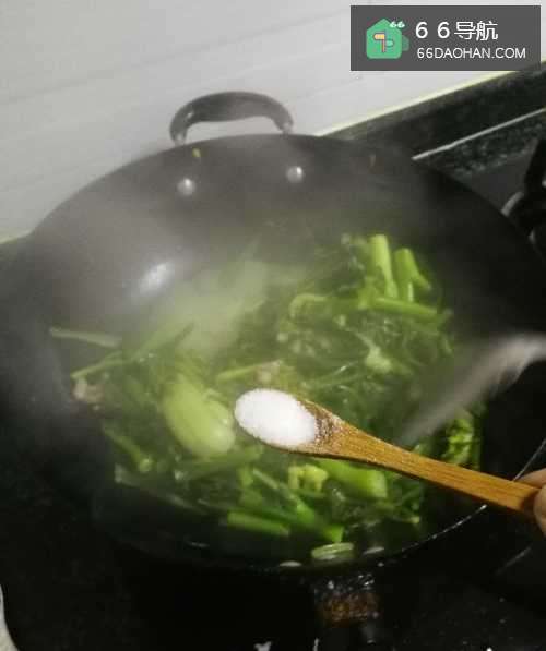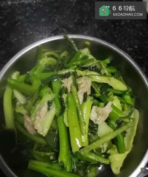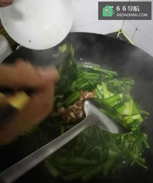 大火炒青菜同时加入些鲜肉,非常的美味可口。