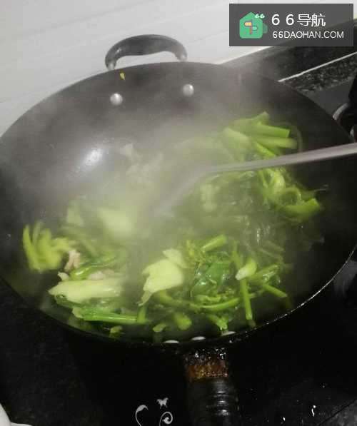 3使用迅态绵热火爆炒,接着放入清水调付煮一下。