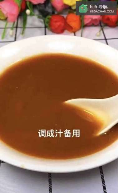 4接下来准备个碗,加入半碗清水,半勺米醋,半勺白糖,少许生抽,再加入一点老抽调色,再来一点盐和一小勺干淀粉,搅拌均匀调成料汁备用,