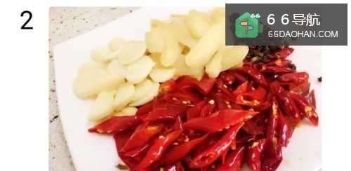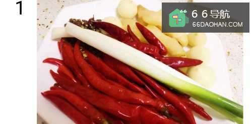 然后准备好配料材料红色泡椒、干辣椒、泡姜、大蒜、大葱、干辣椒。