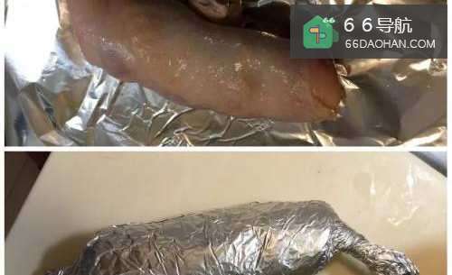 2取出后用锡箔纸卷成柱状,放入电锅,外锅2杯水,约蒸40分钟。