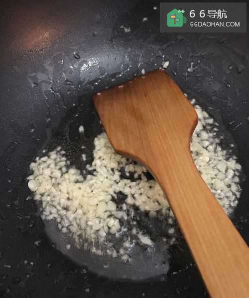 5往锅中倒入适量植物油、盐和鸡精,待油热后,将蒜放入锅中