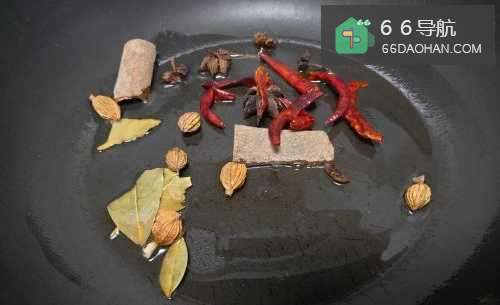 7加入香芹,葱段,少许香油,十三香翻炒,大火收汁即可。