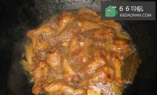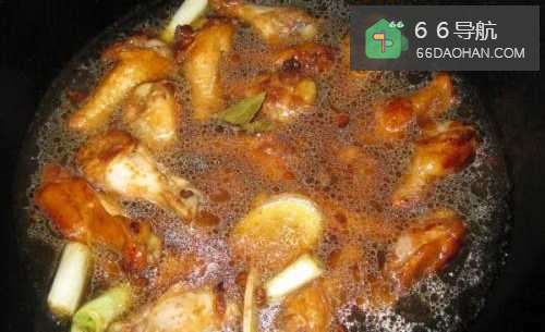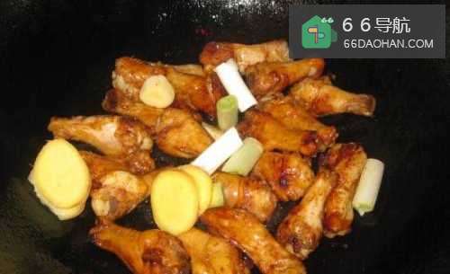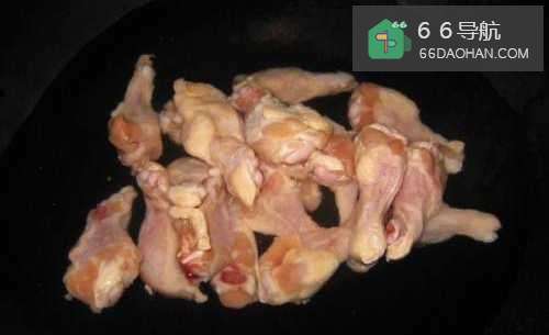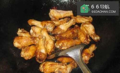 5倒入焯好的鸡翅根快速翻炒,使其上色均匀