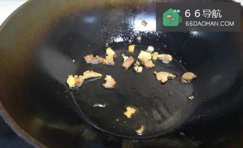 33.入切好的肉,进行煸香,可以加一点点生抽(半勺左右)。