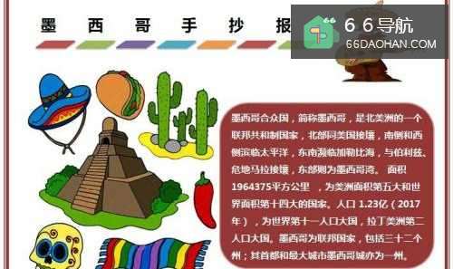 5最后,在【墨西哥手抄报】标题的下方左侧处,画出墨西哥相关内容及外框线,如下图所示。