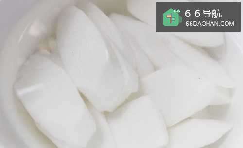 5切块后的淮山泡在清水里,以免氧化。