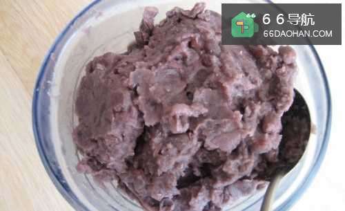 3趁着这段时间,把事先煮好的红豆,做成豆沙馅,放在一边备用。