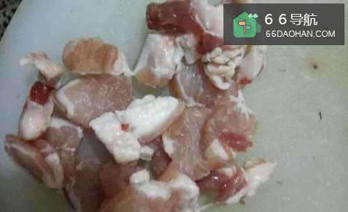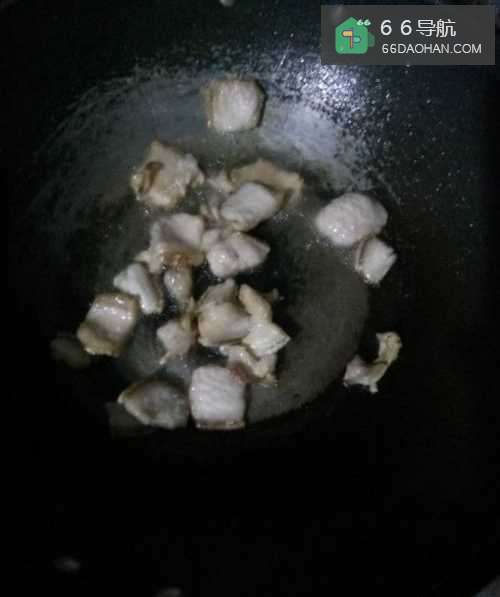 4开火,加入适量的食用油,将五花肉入锅煸炒至稍微出油;