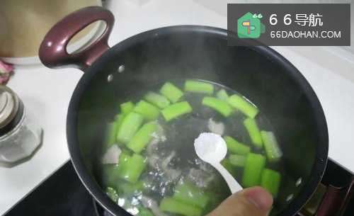 55,瘦肉熟了后,加入一勺盐,搅拌均匀。