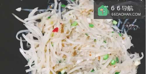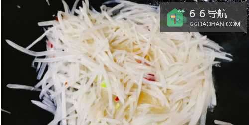 4再把萝卜丝放入锅转大火翻炒半分钟。