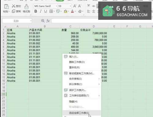 2【鼠标右键单击】Excel表格中的任意表页,选择【选定全部工作表】;