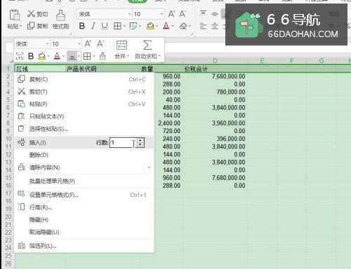 3在选定的表页,选择要添加表头的【行】,点击【鼠标右键】,选择【插入行】;