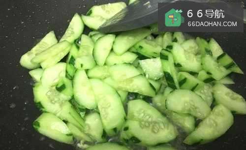 4重新加油,烧热后下蒜瓣,倒入黄瓜翻炒至半熟。