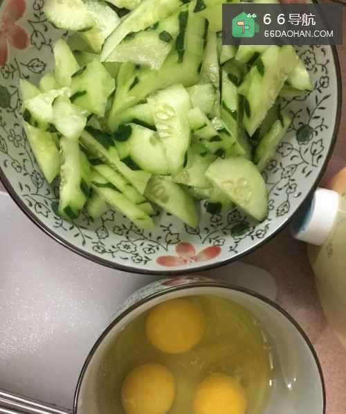 准备好食材,青瓜切块,鸡蛋加盐搅拌均匀。