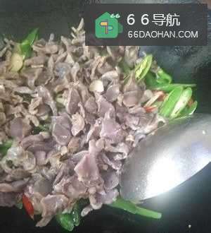 7放入青辣椒翻炒后放入鸡胗继续翻炒后,关小火