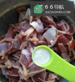 4切好的鸡胗用,盐味糖,白酒,料酒小苏打腌制20分钟。
