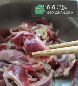 5将腌制好的鸡胗倒入5到6成热的油锅里快速过油至变色捞出备用。