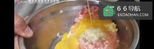 3打入鸡蛋,将馅料抓匀,拇指与虎口配合制作丸子